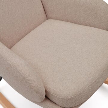 p>Stolica za ljuljanje Maustin u bež boji izrađena je od kvalitetnih materijala, uključujući bukovinu i čelik, što joj osigurava dugotrajnost i stabilnost. Tapecirano sjedalo s mekanim jastucima pruža ugodno iskustvo sjedenja, dok klizači od masivne bukovine s filcom štite vaše podne obloge od oštećenja.