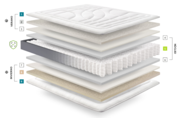Detaljniji sastav kreveta možete vidjeti na dodatnoj slici, gdje je madrac podijeljen na 9 različitih područja (od vrha do dna):