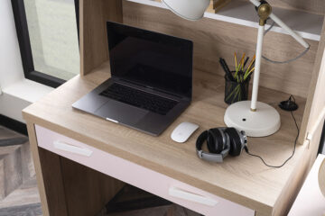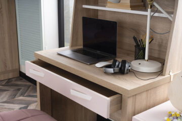 Stol uključuje jednu ladicu s mekim zatvaranjem. Ima atraktivnu ružičastu prednju stranu koja daje šaren i veseo izgled, a pritom se dobro slaže s ostalim namještajem iz serije “Angel”.