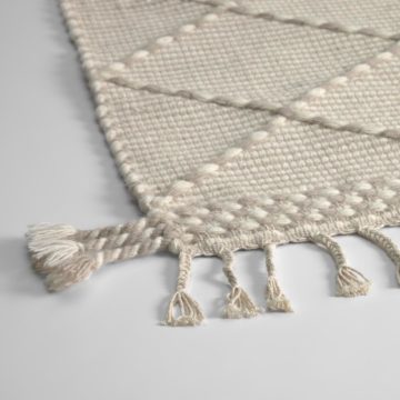 Tepih Nutrit odlikuje se elegantnim izgledom i kvalitetnom iizradom od 100 % pamuka. Suvremen dizajn postignut je izpletenim uzorkom, koji če uljepšati mnoge prostore. Dobavljiv je u bijež i crnoj verziji.