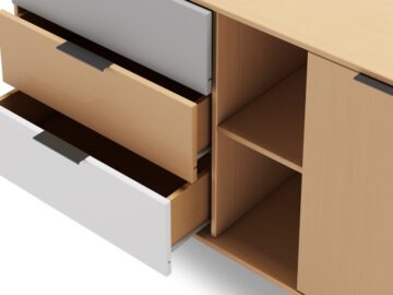 • Funkcionalnosti: Ladice, vrata, police, noge