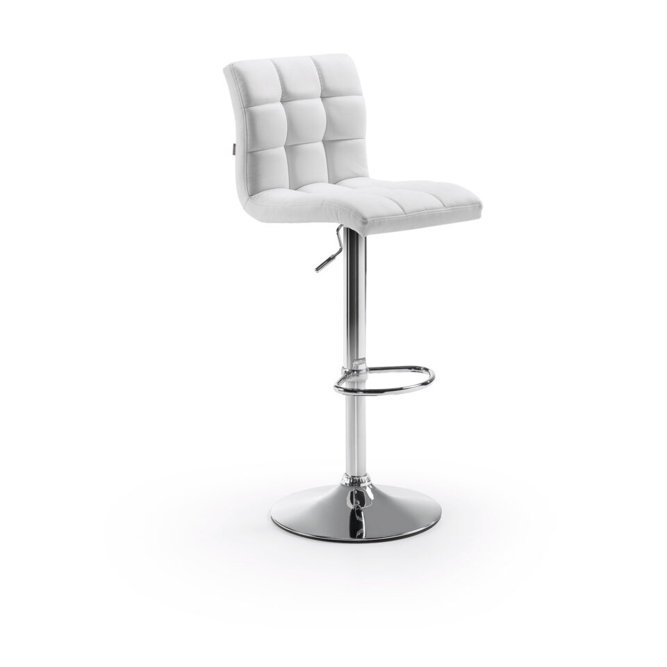 Metalna barska stolica Lodi ima moderan izgled. Ima nogu od kromiranog metala.