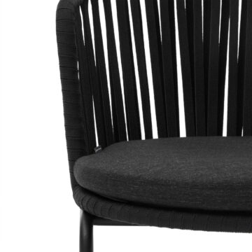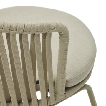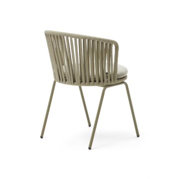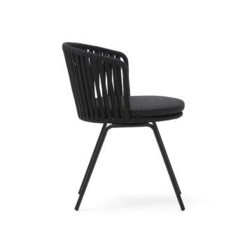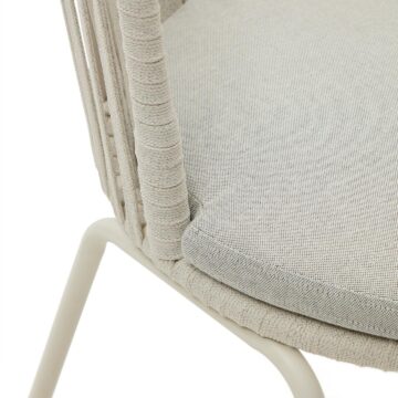 Metalna blagovaonska stolica Saconca dizajnirana je za večere kod kuće ili na otvorenom, s ručno pletenim naslonom od užeta koji unosi opušten izgled. Idealna je za duge razgovore nakon večere na vašem balkonu, terasi ili vrtu. Stolica Saconca je izvrstan izbor za udobno sjedenje na otvorenom, nadopunjujući vaš vanjski prostor modernim i opuštenim stilom.
