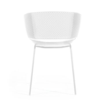 Metalna blagovaonska stolica Yeray kombinira stil i svestranost, budući da je izrađena od reciklirane plastike, tretirane UV zaštitom, te opremljena čeličnim nogama, što je čini pogodnom za upotrebu na otvorenom. Dizajnirana je kako bi odmah poboljšala izgled vašeg balkona, terase, vrta ili blagovaonice. Na otvorenom ili unutar doma? Odluka je vaša!