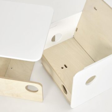 Montessori visoka dječja stolica Nuun može se koristiti zajedno ili odvojeno. Različite kombinacije i postavke omogućuju djeci samostalno učenje kroz sve faze razvoja.