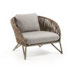 Udobna stolica Branzie napravljena je od organskog užeta i galvaniziranog čelika. Prirodnim bojama prilagodit če se brojnim zasjedam namještaja. Jastuci su uključeni u cijenu.