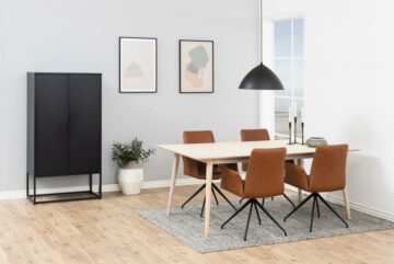 Dnevne sobe ili prostora u kojem želimo provest čim više vremena potrebno je opremiti kvalitetno i udobno. Odgovor za taj problem nosi naslonjač Naya koji sa svojim sjedištem izrađenim iz eko kože zove sve prisutne da sjednu i uživaju u trenutku. Naslonjač je na odabir u dvije boje: brandy (smeđa) ili crna. Obje verzije sadrže metalno postolje prašno obojano u crnu boju.