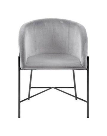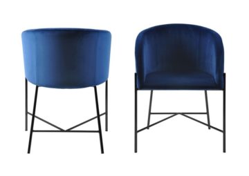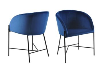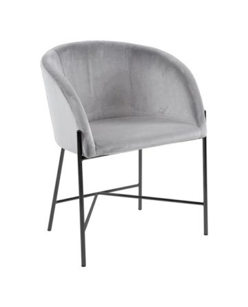 Naslonjač Nelson sadrži sjedište obučeno u kvalitetnu baršun tkaninu i čelično postolje u crnoj boji. Sjedište je na odabir u dvije boje – sivoj i tamno plavoj boji.