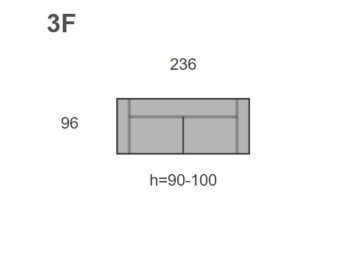 Dimenzije sofe su 236 x 96 x 90-100 cm. Dubina sjedala je 55 cm. Visina sjedala je 43 cm.