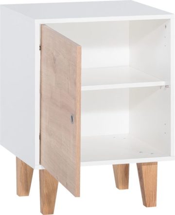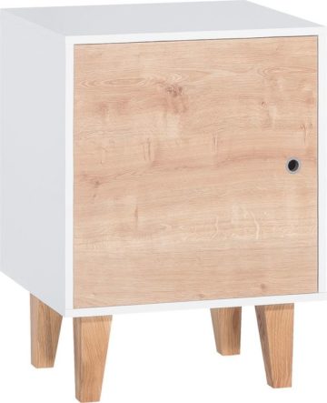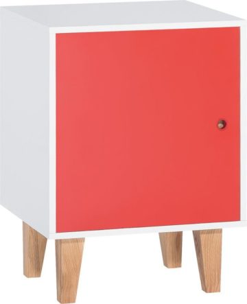 Concept nizki ormarić možete koristiti samostalno ili kao visoki nočni ormarić. Izrađen je od iverne ploče, zaštićene vrhunskom kvalitetom melamina. Noge ormarića su od masivnog drva. Ormarić ima jedna vrata. Birati možete između boja: hrast, crvena, žuta i plava.