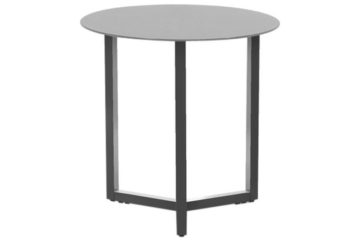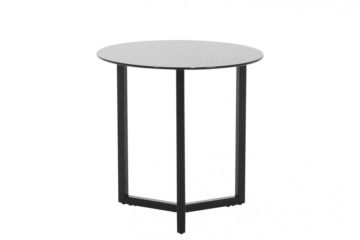 Noćni ormarić Brunetta ima ploču od 6 mm debelog kaljenog stakla. Podnožje je metalno i lakirano u crnu ili sivu boju.