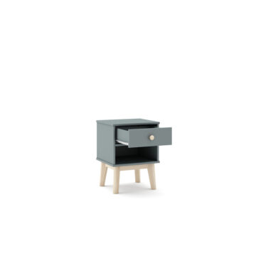 Ovaj noćni ormarić ima jednu ladicu i jednu policu, nudeći razne mogućnosti za pohranu. Ladica nudi diskretno skladištenje osobnih stvari poput knjiga, naočala ili mobitela, dok je otvoreni prostor pogodan za postavljanje ukrasnih elemenata ili noćne lampe.