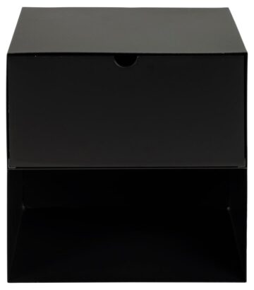 Noćni ormarić Joliet je minimalistična i industrijski inspirirana rješenja za vašu spavaću sobu ili hodnik. Izrađen od mat crnog praškasto lakiranog čelika, ovaj zidni ormarić uključuje jedan ladicu od crnog MDF-a i otvoreni prostor za izlaganje knjiga ili osobnih predmeta. Dizajniran je za moderni način života i donosi funkcionalnost te profinjeni industrijski stil.