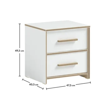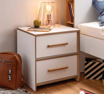 Noćni ormarić Modera pravo je ogledalo glamurozne elegancije koju serija nudi, a istovremeno stvara potpuno novi i osvježavajući izgled u sobi za mlade. Ovaj višenamjenski noćni ormarić izuzetno je koristan jer sadrži dvije prostrane ladice koje nude mnogo internog kapaciteta za pohranu.