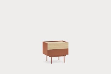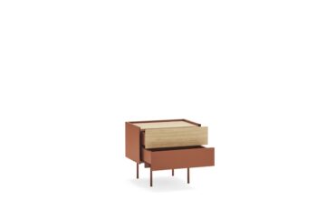 Noćni ormarić Otto oduševljava modernim dizajnom koji spaja sofisticiran izgled lakirane površine i toplinu hrastovog furnira. Njegove čiste linije i naglašeni detalji u boji omogućuju prilagodbu različitim interijerima, dok dva prostrana ladica osiguravaju praktičan prostor za pohranu.