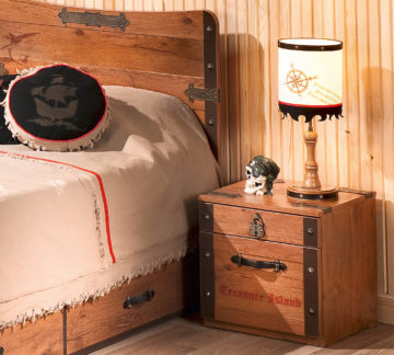 Noćni ormarić Pirat ima dvije ladice. Prva ima ključavnicu umjesto ručke, a druga ima veliku ručku. Ormar je u obliki škrinje i impresionirat će svakog malog gusara sa svojim izgledom. Zaštićen je sa melaminom, koji štiti od ogrebotina i prašine.
