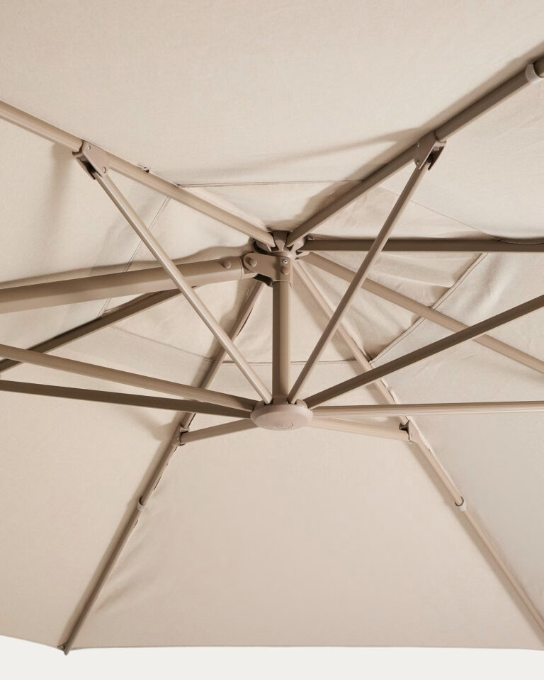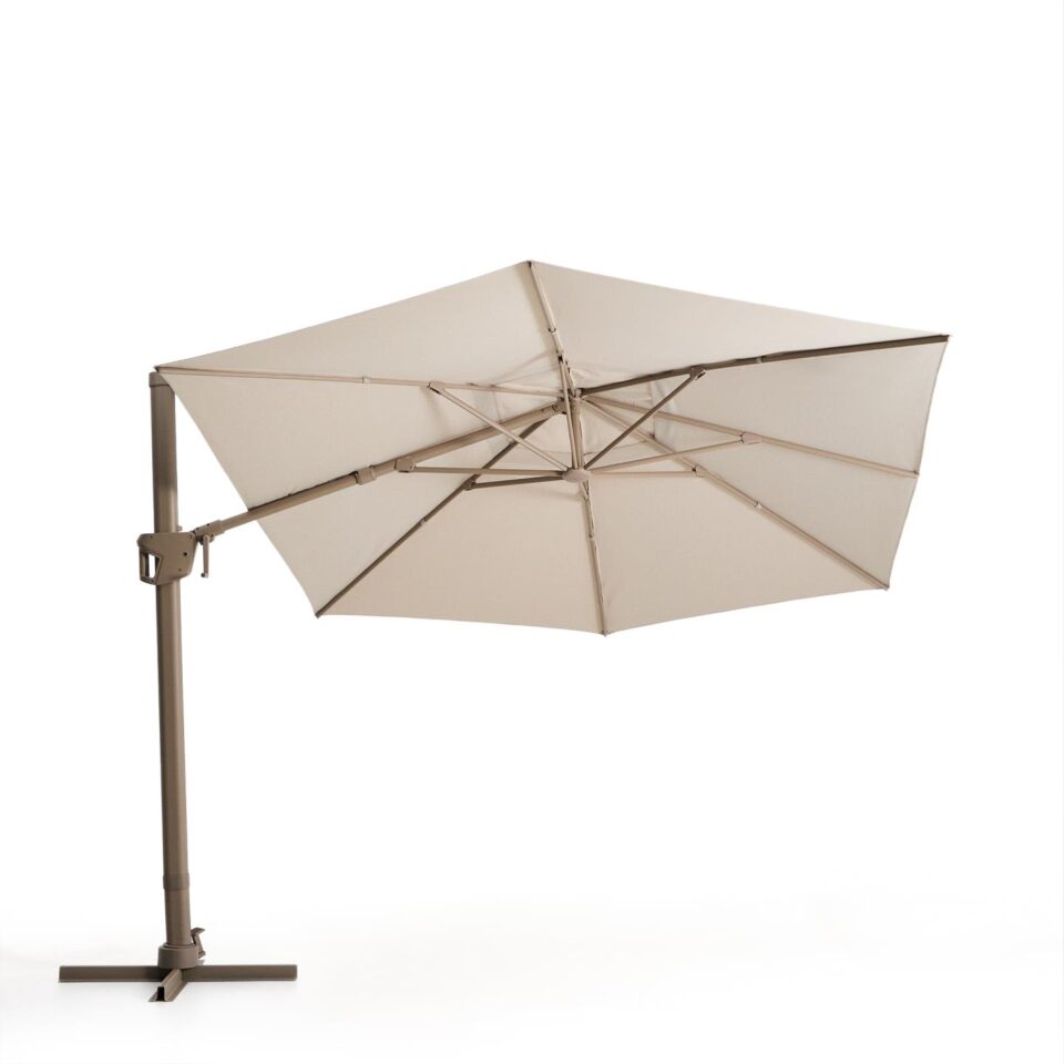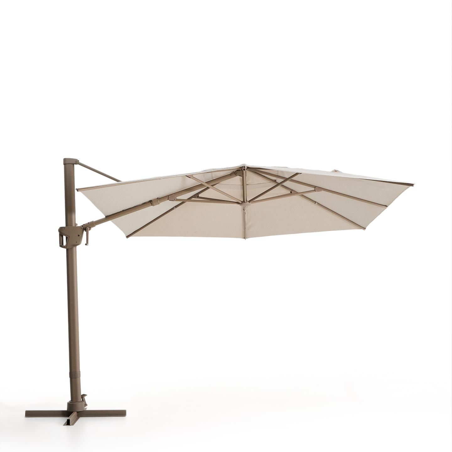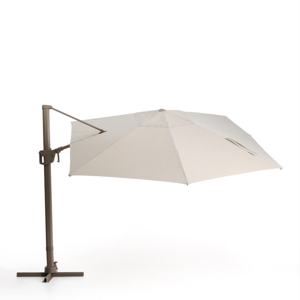 - Tip suncobrana: Viseći (cantilever) vrtni suncobran, koji omogućuje slobodno kretanje i postavljanje ispod njega.