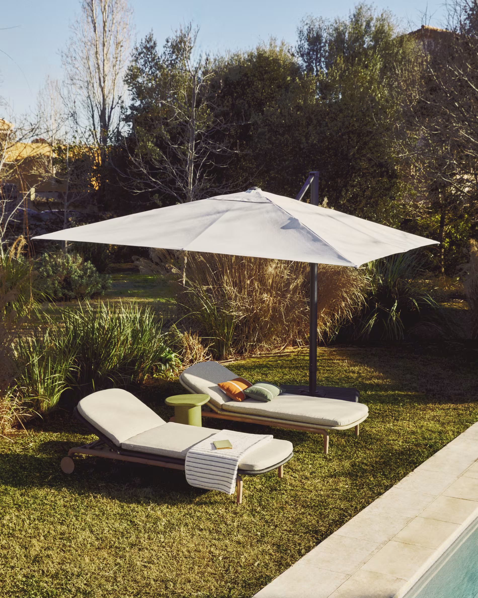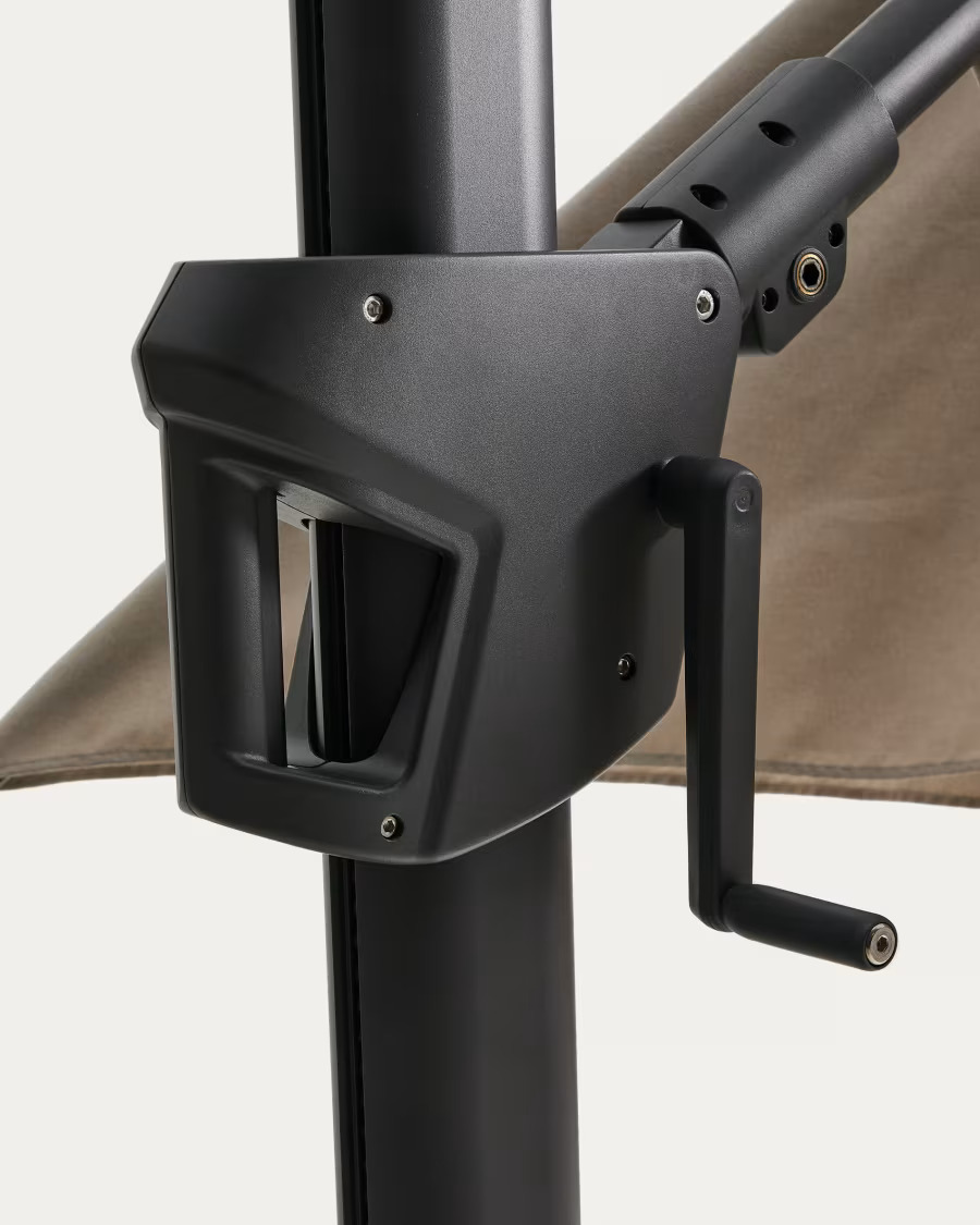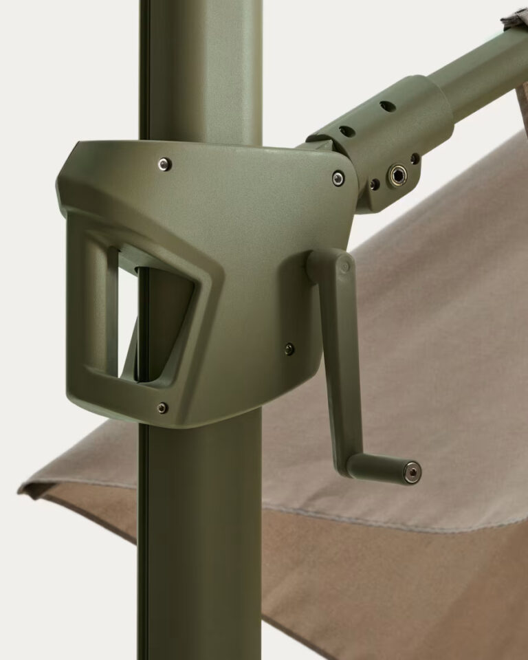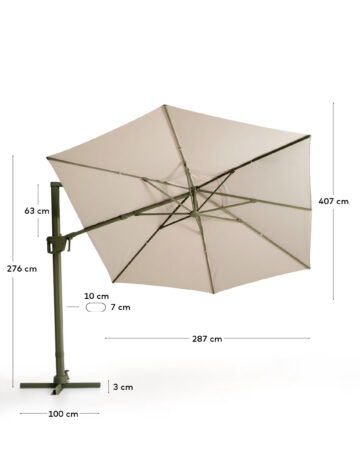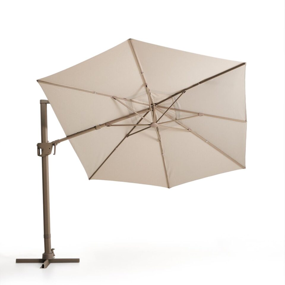 - Tip suncobrana: Viseći (cantilever) vrtni suncobran, koji omogućuje slobodno kretanje i postavljanje ispod njega.