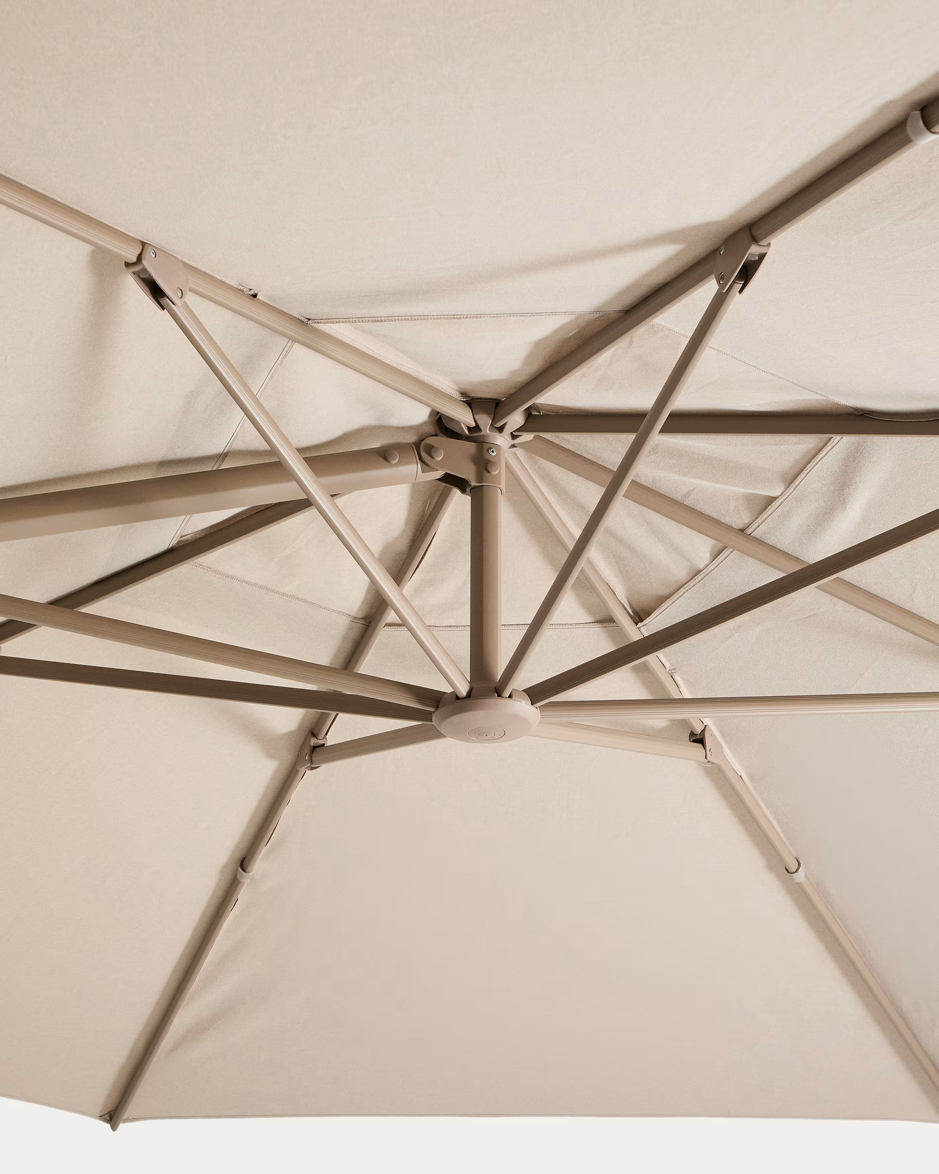 S visećim vrtnim suncobranom Noli u elegantnoj bež boji stvorit ćete savršeno utočište od sunca u svom vrtu ili na terasi. Ovaj prostrani suncobran, dimenzija 300 x 420 cm, nudi iznimno zasjenjenje i dodaje sofisticiranost vanjskom prostoru. Osim bež boje, dostupan je i u bojama taupe, zelenoj i grafitnoj, kako bi se savršeno uklopio u vaš stil.