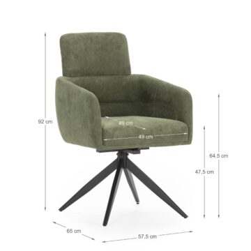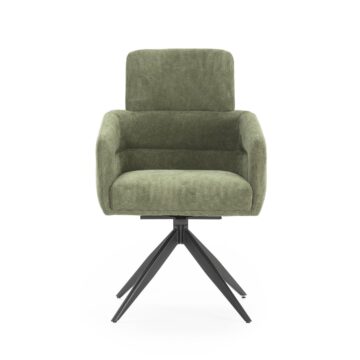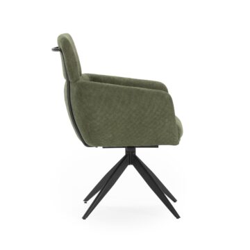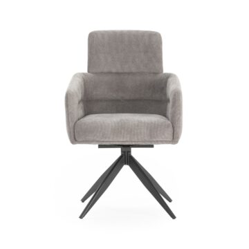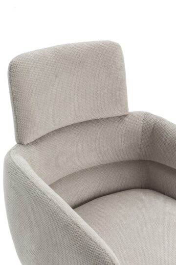 Okretna fotelja AIXA izrađena je od kvalitetne tkanine koja osigurava mekoću i udobnost pri sjedenju. Crne metalne noge pružaju stabilnost i dugotrajnost, dok okretna funkcija omogućuje lako kretanje i pristup iz svih kutova.