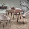 Okrugli blagovaonski stol Domenico donosi toplinu drva i eleganciju zlatnih detalja u vašu blagovaonicu. Njegov oblik bez oštrih rubova pruža osjećaj sigurnosti i ugodne domaće atmosfere, a prikladan je za industrijske, moderne ili potkrovne interijere.