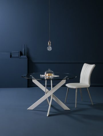 Ruth je individualan i fleksibilan blagovanski stol elegantnog izgleda. Suvremenim dizajnom prilagodit če se brojnim zasjedam namještaja te ih dekorativno dopunit.