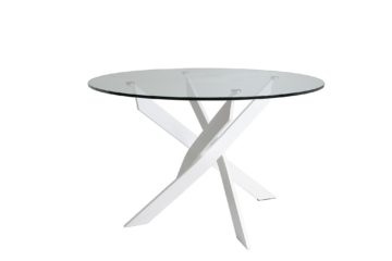Apstraktno metalno postolje je obojano bijelo. Ploča je napravljena od kvalitetnog i otpornog kaljenog stakla.