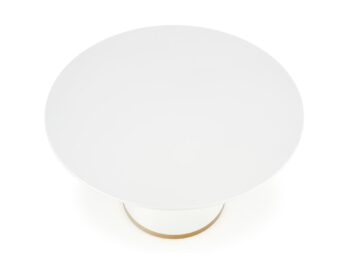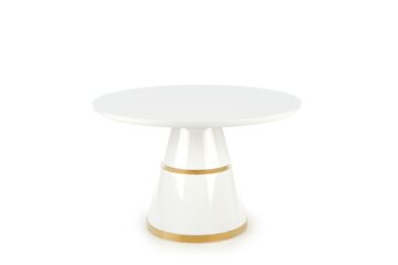 Okrugli blagovaonski stol Vegas u bijeloj boji sa suptilnim zlatnim detaljem donosi eleganciju i profinjenost u suvremene interijere. Lakirana površina ploče i podnožja osigurava prestižan izgled i otpornost na svakodnevnu upotrebu.