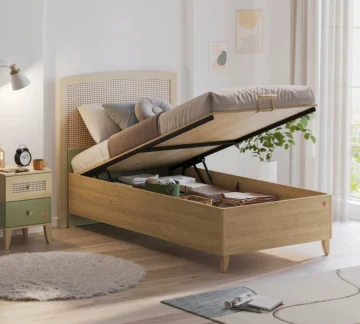 - Krevet nudi prostran prostor za udoban san, dok veliki spremnik ispod kreveta omogućuje pohranu različitih predmeta i doprinosi organiziranosti dječje sobe.