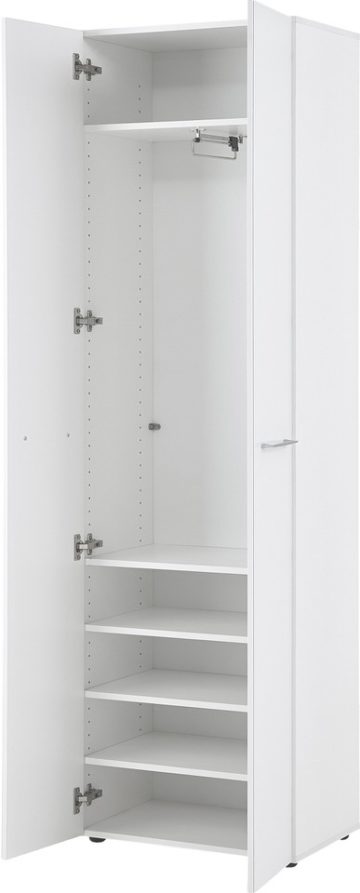 Ormar Scalea dolazi u bijeloj boji. Fronte ormara su izrađene od ojačanog stakla što ga čini sigurnim za upotrebu a istovremeno mu daje elegantan sjaj. U unutrašnjosti ima 5 polica koje možete postaviti na visinu po želji. Također ima jednu šipku na izvlačenje za vješanje odjeće. Ima dvoja vrata koja se meko zatvaraju, ABS rubove i metalne ručke. Korpus je zaštićen melaminskom zaštitom.