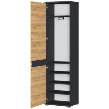 Ormar za predsoblje Lissabon ima korpus i fronte izrađene od visokokvalitetne oplemenjene iverice. U unutrašnjosti se nalaze četiri police i šipka za vješanje. Rubovi ormara su zaobljeni (ABS).
