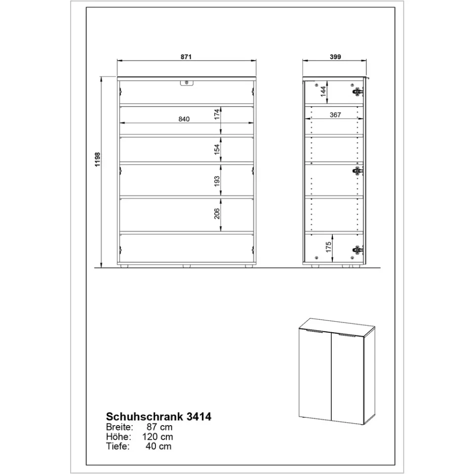 S dimenzijama širine 87 cm, visine 120 cm i dubine 40 cm, nudi obilje prostora za pohranu vaše kolekcije cipela.