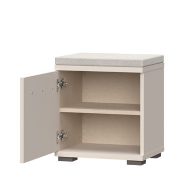 Ormarić za cipele Milla Opera K1 savršeno je rješenje za svakoga tko želi spojiti praktičnost i udobnost u svom domu. S dimenzijama od 46 cm širine, 53 cm visine i 36 cm dubine, kompaktan je, ali istovremeno funkcionalan. Lakirana vrata s nježnim mat UV lakom u kombinaciji s profinjenim ručkama u boji Cortado smeđa mat stvaraju elegantan izgled, dok tapecirana jastučić omogućuje udobno sjedenje prilikom obuvanja. Ladica debljine 18 mm i podesive noge osiguravaju stabilnost i trajnost. Ormarić za cipele Milla Opera K1 idealan je komad namještaja za svaki moderan dom, spajajući stil i funkcionalnost.