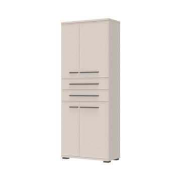 Garderobni ormar Milla Opera v42 donosi savršen balans između elegancije i praktičnosti. Sa širinom od 76 cm, visinom od 194 cm i dubinom od 36 cm, nudi dovoljno prostora za odlaganje odjeće i dodataka, dok zadržava elegantan izgled. Četiri vrata, dvije ladice i unutrašnjost u tekstilnom dekoru osiguravaju funkcionalnost i urednost. Ormar je opremljen visokokvalitetnim šarkama i klizačima za mekano zatvaranje, što omogućuje tiho i jednostavno korištenje. Izabrani materijali, poput Univer Egger i UV mekog mat laka, te profinjene mat ručke u boji Cortado smeđa dodaju dodir luksuza svakom prostoru.