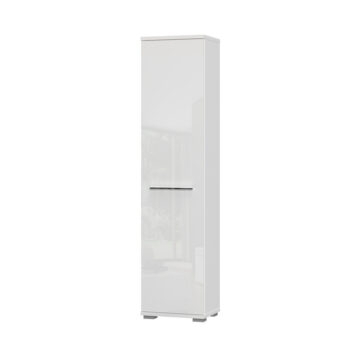 Ormar je u potpunosti u bijeloj boji sjaja. Površina je UV lakirana i time otpornija na ogrebotine kao i na sunčevu svjetlost. Bočne stranice su debljine 18 mm, a strop i dno 25 mm. Vrata imaju mehanizam za meko zatvaranje. U ormaru je pet polica. Podesive noge i ručka su u potpunosti kromirane. Ormar je dio bogate kolekcije Piano predsoblja kojeg možete kombinirati po svojim željama.