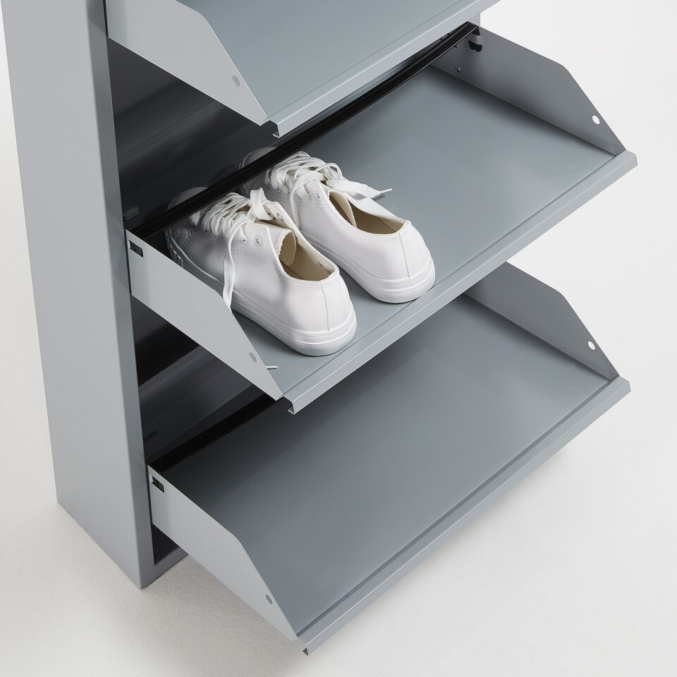 Ormarić za cipele Rox dolazi u sivoj boji. Ima tri ladice za po dva para cipela. U potpunosti izrađen je od metala. Pričvrsti se uz stijenu.