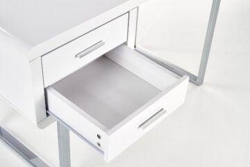 PISAĆI STOL B30 je stol modernog dizajna, izrađen u kombinaciji kromirane metalne baze i MDF stolne ploče u bijelom sjaju.