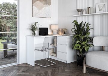 - Sastav: velika kutna radna površina, tri prostrane ladice, otvorene bočne police