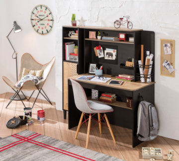 Pisači stol Black je dostupan u boji drva i crne. Sa desne strane ima dodatnu vješalicu na koju se može objesiti školska torba ili nešto drugo. Rubovi stola su zaobljeni. Sastoji se od dvije ladice, koje se tiho zatvaraju i jedne police. Zaštićen je sa melaminom, koji je otporan na ogrebotine i prašine. Preporučujemo i kupnju studijske jedinice.