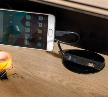 Pisači stol Black je veći u liniji. Dostupan je u modernoj kombinaciji boja drva i crne. Ima dvije ladice i jednu policu. Rubovi stola su zaobljeni. Zaštićen je sa melaminom, koji je otporan na ogrebotine i prašine. Također preporučujemo kupnju studijske jedinice.