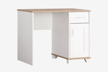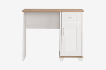 Radni stol iz kolekcije Frezy, u bijeloj boji s dodatkom prirodne boje za rustikalni izgled, idealan je za svaki mladenački ili dječji prostor koji treba funkcionalan i estetski dopadljiv radni kutak. S jednom ladicom i jednim vratima opremljenim sustavom za meko zatvaranje, ovaj radni stol nudi praktično rješenje za pohranu dok zadržava elegantan i toplo privlačan rustikalni izgled.