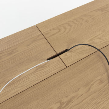 Jakes je moderan pisaći stol prirodnog i jednobojnog izgleda. Ima dvije ladice i nekoliko manjih pretinaca za spremanje, vidljivih na fotografiji. Također ima praktični izrez za kabel. Izrađen je od MDF ploče, a njegov izgled nadopunjuje prirodni furnir jasena. Visok je 75 cm.