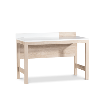Pisaći stol Lermo odlikuje se suvremenim i jednostavnim dizajnom. Izrađen je od iverne ploče E1 kvalitete, zaščitene ABS rubnom trakom. Dokupiti se mogu kompatibilni stijenski regal i organizirajuča jedinica sa ladicama.