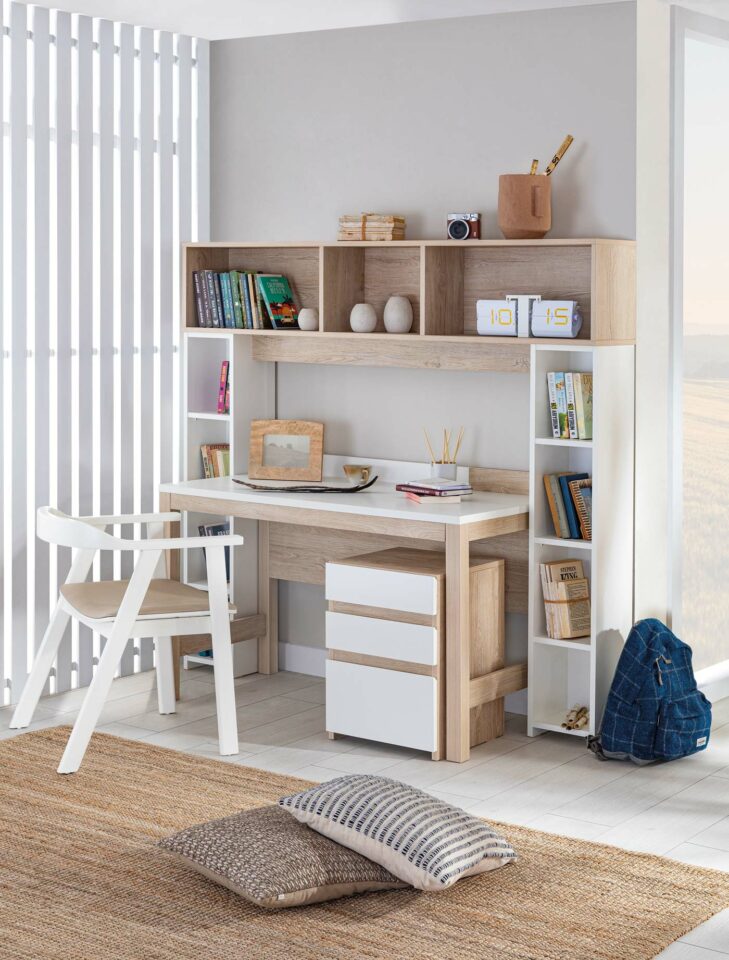 Pisaći stol Lermo odlikuje se suvremenim i jednostavnim dizajnom. Izrađen je od iverne ploče E1 kvalitete, zaščitene ABS rubnom trakom. Dokupiti se mogu kompatibilni stijenski regal i organizirajuča jedinica sa ladicama.