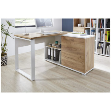 Ako tražite puno prostora za pohranu, program Lioni upravo je za vas. Dolazi u klasičnoj bijeloj boji sa uzbudljivim akcentima hrasta. Stol ima integriranu komodu sa drsnima vratima za dodatni prostor za pohranu dokumenata.