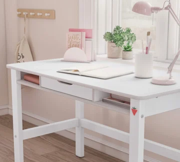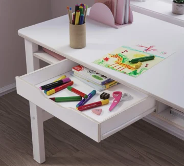 Stol Montes u bijeloj boji dizajniran je kako bi osigurao još veću sigurnost djeteta, jer su svi rubovi blago zaobljeni. Ispod ploče stola nalazi se prostrana ladica s mekim zatvaranjem.