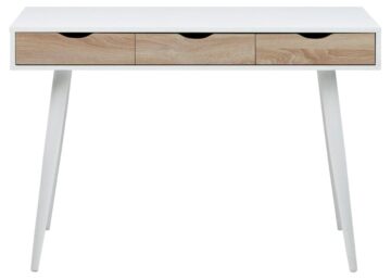 Pisači stol Neptun donosi jednostavnost i eleganciju u vaš radni prostor s čistim linijama i stožastim nogama. S vrhom od bijele melaminske površine i ladicama u izgledu hrasta sonoma, ovaj stol spaja modernu estetiku s praktičnošću. Njegova prostrana površina nudi dovoljno prostora za prijenosno računalo, knjige i osobne predmete, dok tri ladice osiguravaju jednostavno pohranjivanje.