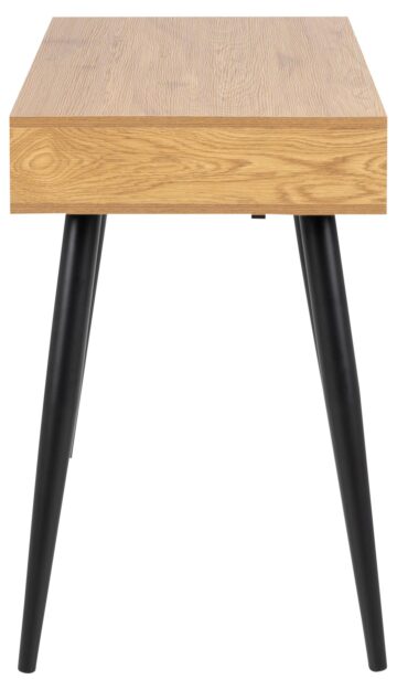 Pisači stol Neptun donosi jednostavnost i funkcionalnost u vaš radni prostor s čistim linijama i stožastim nogama. S gornjom površinom od mat divljeg hrasta i podnožjem od crnog prašno lakiranog čelika, ovaj stol nudi stabilnost i moderan izgled. Prostrana površina omogućuje udoban rad s prijenosnim računalnikom, knjigama i osobnim predmetima, dok tri ladice osiguravaju jednostavnu pohranu.