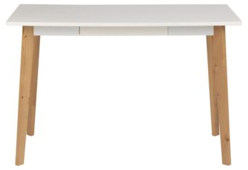 Pisači stol Raven donosi jednostavnost i eleganciju nordijskog dizajna u vaš radni prostor. S pravokutnom pločom od bijelog NC lakiranog MDF-a i podnožjem od smeđe lakirane jove, ovaj stol kombinira modernu estetiku s praktičnošću. Njegov dizajn uključuje i ladicu, gdje možete pohraniti dokumente i pribor za pisanje, što osigurava urednost i organizaciju.