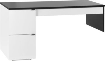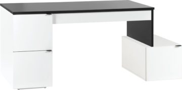 Suvremen pisaći stol Young users ima crnu ploču i bijelu osnovu sa dvije ladice. Desno možete dodati spremnik.